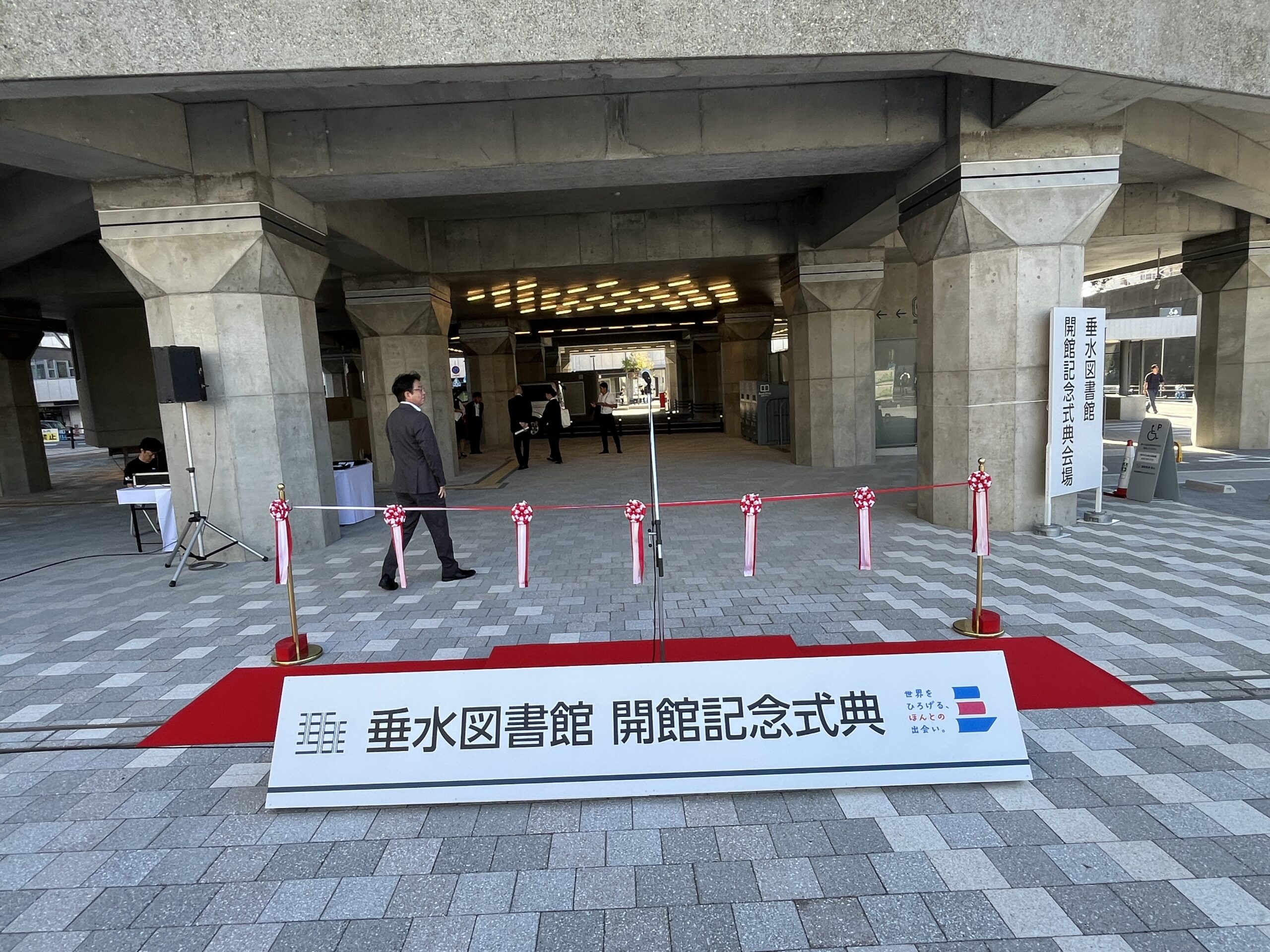 垂水図書館 開館記念式典 会場設営 2025.09.29設営・施工実績 神戸市垂水区の垂水図書館において、開館記念式典の会場設営をさせていただきました。 金ポールや紅白リボン・紅白テープといったテープカット備品の設置や、 タイトル看板の製作取付、音響設備オペレーターの手配などさせていただきました。 テープカットの会場設営はBASEへ!!! Tweet Share Hatena Pocket RSS 投稿者: 島田 設営・施工実績 8番出口x神戸市営地下鉄 異変探しミッション 会場設営 シルバー合唱フェスティバル 会場設営 関連記事一覧 Welcome to KOBE in KIX 会場設営 神戸総合運動公園 ユニバー記念競技場 平台ステージ設営 ステージ設営 三ノ宮駅前さんきたアモーレ広場リニューアルイベントの会場... インフィオラータ 会場設営 兵庫県警察年頭視閲式 会場設営 ハーバーランドセンタービル 大規模ワクチン接種会場... ふれあい中央カーニバル会場設営 垂水児童館・おやこふらっとひろば完成記念式典 会場設営