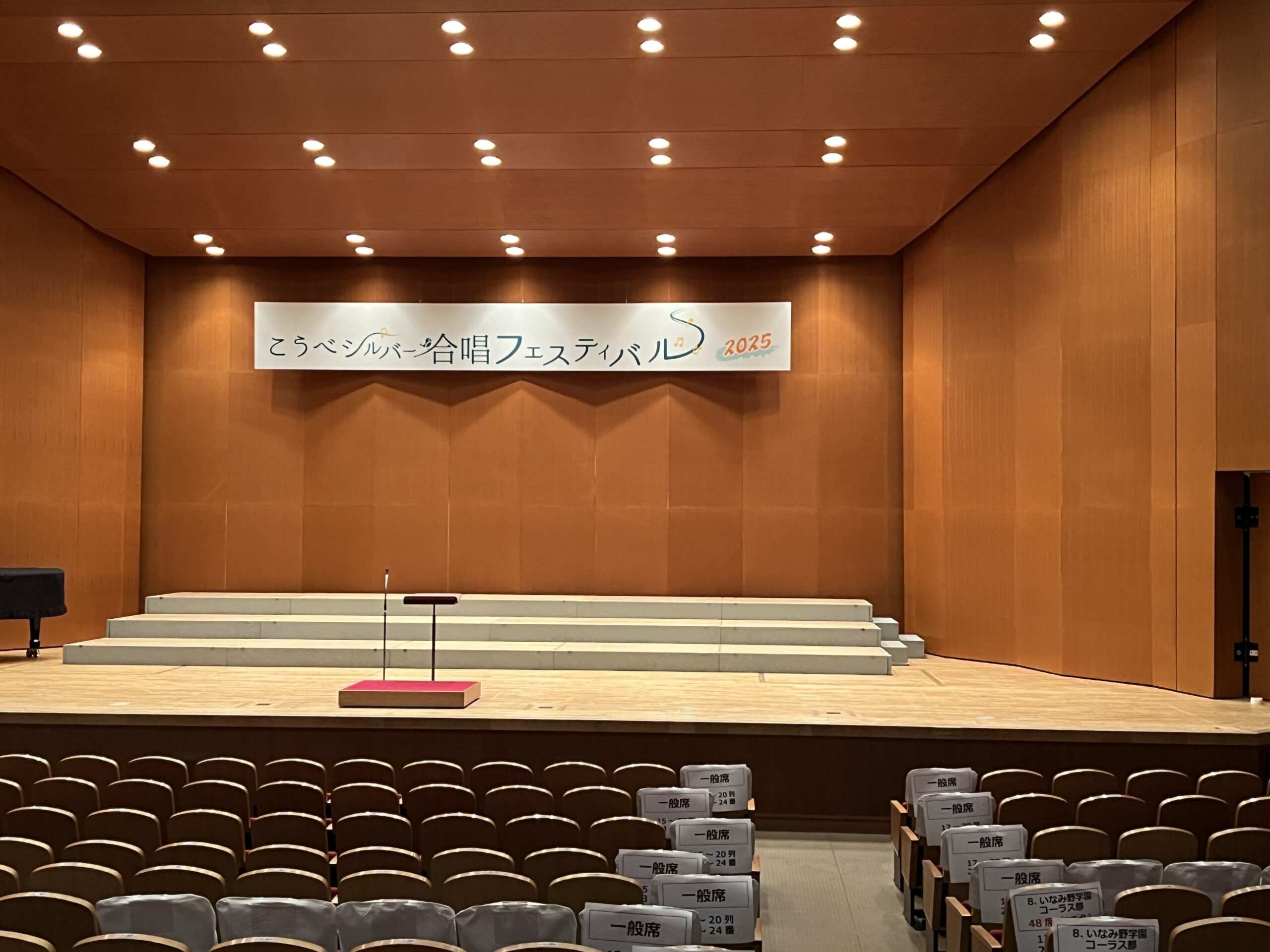 シルバー合唱フェスティバル 会場設営 2025.10.06設営・施工実績 神戸文化ホールにおいて開催された、シルバー合唱フェスティバルの会場設営をさせていただきました。 ステージ上の横一文字吊り看板や立看板の製作・設置をしております。 また休憩控室にはブルーシートにて養生した上でレイアウトしております。 音楽イベントの会場設営はBASEへ!!! Tweet Share Hatena Pocket RSS 投稿者: 島田 設営・施工実績 垂水図書館 開館記念式典 会場設営 日本血液学会学術集会 企画ブース施工 関連記事一覧 地鎮祭会場設営撤去 冬の夕べ~庭園鑑賞会~ 会場設営 日本血液学会学術集会 企画ブース施工 交通フェスティバル 会場設営 近畿ブロック外国人留学生就職面接会2023 会場設営 ROKKO i PARK オープニングセレモニー 会場設... 味園ユニバース スタッキングチェアレンタル ヴィッセル神戸ビールかけ会場・記者会見会場 設営 ロハスミーツ 会場設営