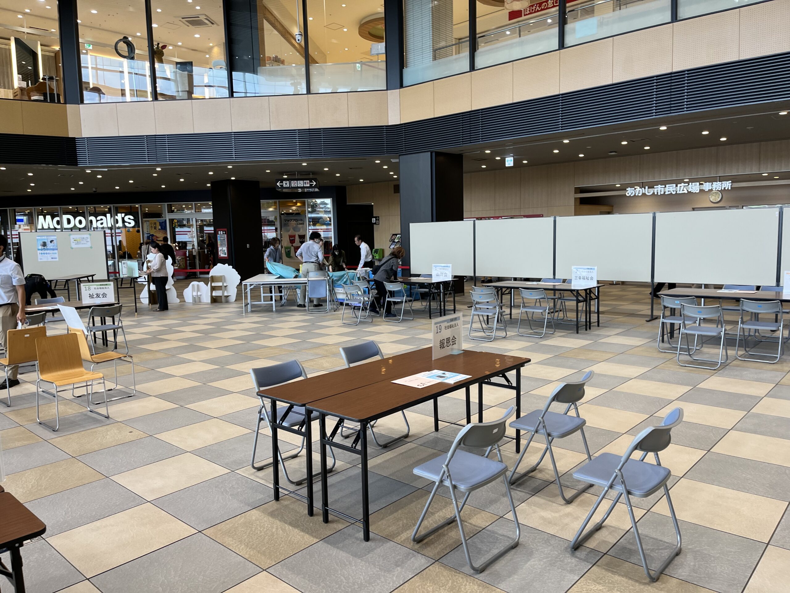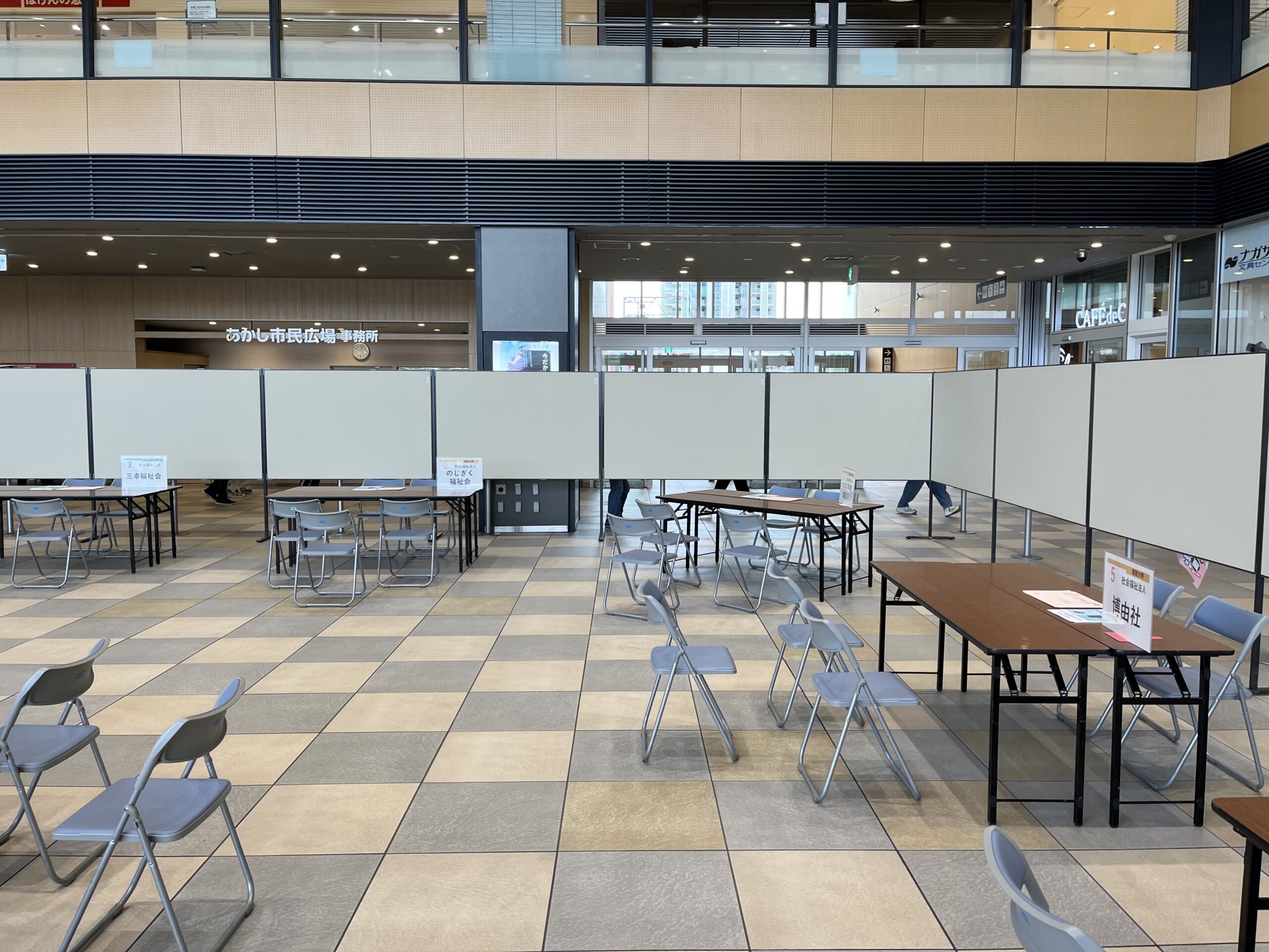 福祉の就職説明会(明石会場)会場設営 2025.10.25設営・施工実績 明石市のあかし市民広場において、就職説明会の会場設営を行いました。 机・ハイテーブル・カタログスタンドを使用し、会場備品の机・椅子・パネルも設置しております。 今回は会場備品を使用しておりますが、安全確保の為パーテーションで区切っております。 弊社にもございますので是非ご利用ください! 屋内会場設営ならBASEへ!!! Tweet Share Hatena Pocket RSS 投稿者: 島田 設営・施工実績 みなとHANABI 会場設営 西神オータムスポーツフェス 会場設営 関連記事一覧 下水道展’25大阪 ブース施工 北野こくさい夏祭り 会場設営 トラス設営 ふれあい中央カーニバル会場設営 福祉の就職説明会 会場設営 変形天板 製作・取付 35歳以上のミドル世代のための就職説明会&企業説明会 会... 広陵町盆踊り 会場設営 神戸ルミナリエ 資機材レンタル