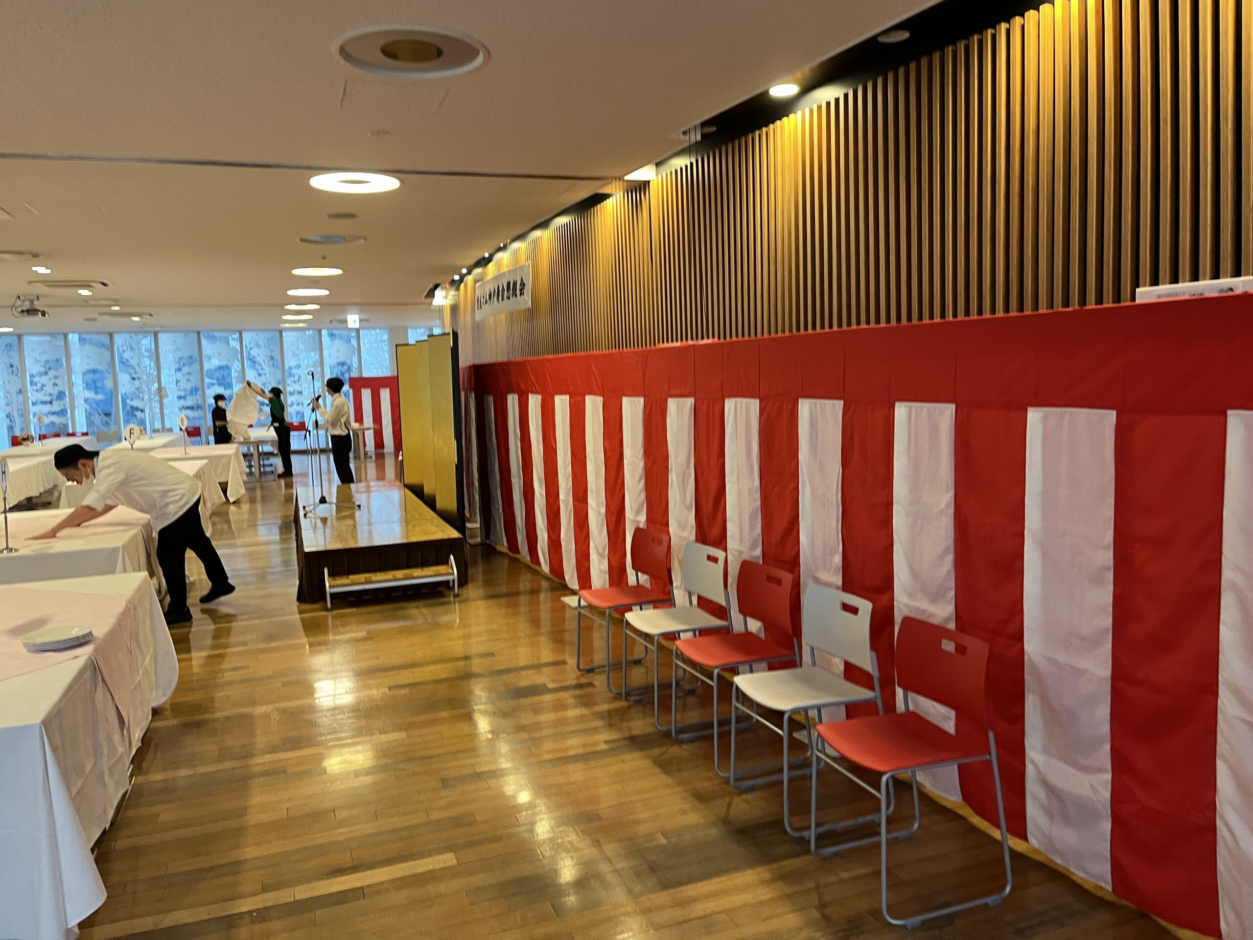 住友ゴム様 寿会 会場設営 2025.11.27設営・施工実績 神戸市の住友ゴム本社において、寿会の会場設営をさせていただきました。 会場全体を紅白幕で装飾して、ステージ周辺は金屏風を設置するなど華やかに演出しております。 社内イベントの会場設営はBASEへ!!! Tweet Share Hatena Pocket RSS 投稿者: 島田 設営・施工実績 Career Meetup 2025 会場設営 宮っ子ウォーキング 会場設営 関連記事一覧 神戸夏送り花火 会場設営 お笑いライブ 会場設営 ドラマ撮影地 休憩テント設営 神戸オクトーバーフェスト2025 会場設営 近畿ブロック外国人留学生就職面接会2023 会場設営 兵庫知事選にかかる開票所 会場設営 神戸まつり オン・ユイットステージ 会場設営 相楽園 菊花展会場設営 玉津大久保線現地調査用パイプテント設営
