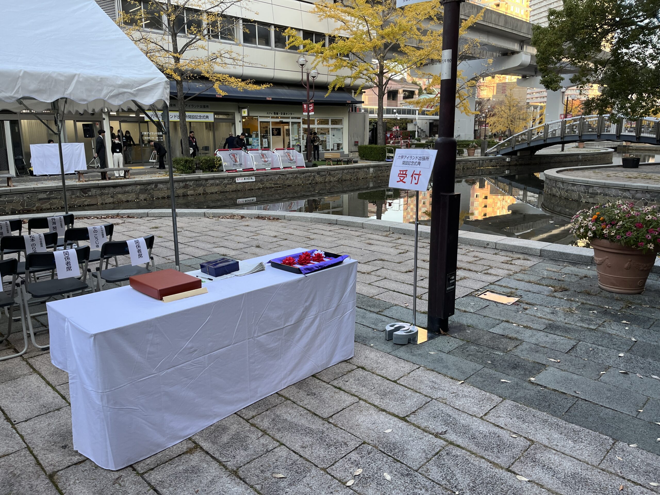 六甲アイランド出張所開設記念式典 会場設営 2025.12.01設営・施工実績 六甲アイランドの東灘区役所六甲アイランド出張所において、開設記念式典の会場設営をさせていただきました。 今回はテープカットなどではなく、INAC神戸によるキックセレモニーが執り行われました。 パイプテントの設営、タイトルサインの製作・取付などをさせていただきました。 音響設備・オペレーター・司会者の手配もさせていただいております。 式典の会場設営はBASEへ!!! Tweet Share Hatena Pocket RSS 投稿者: 島田 設営・施工実績 宮っ子ウォーキング 会場設営 和歌山サンタ☆ラン 会場設営 関連記事一覧 神戸オクトーバーフェスト会場設営 日中文化交流春フェス 会場設営 垂水児童館・おやこふらっとひろば完成記念式典 会場設営 園内墓参ジャンボタクシー試験運行 会場設営 三田国際マスターズマラソン 会場設営 ふれあい中央カーニバル 会場設営 地鎮祭・竣工式会場設営等承ります。 2021総合訓練会場設備を担当させて頂きました。青年海外... 海老江下水処理場通水式典 会場設営