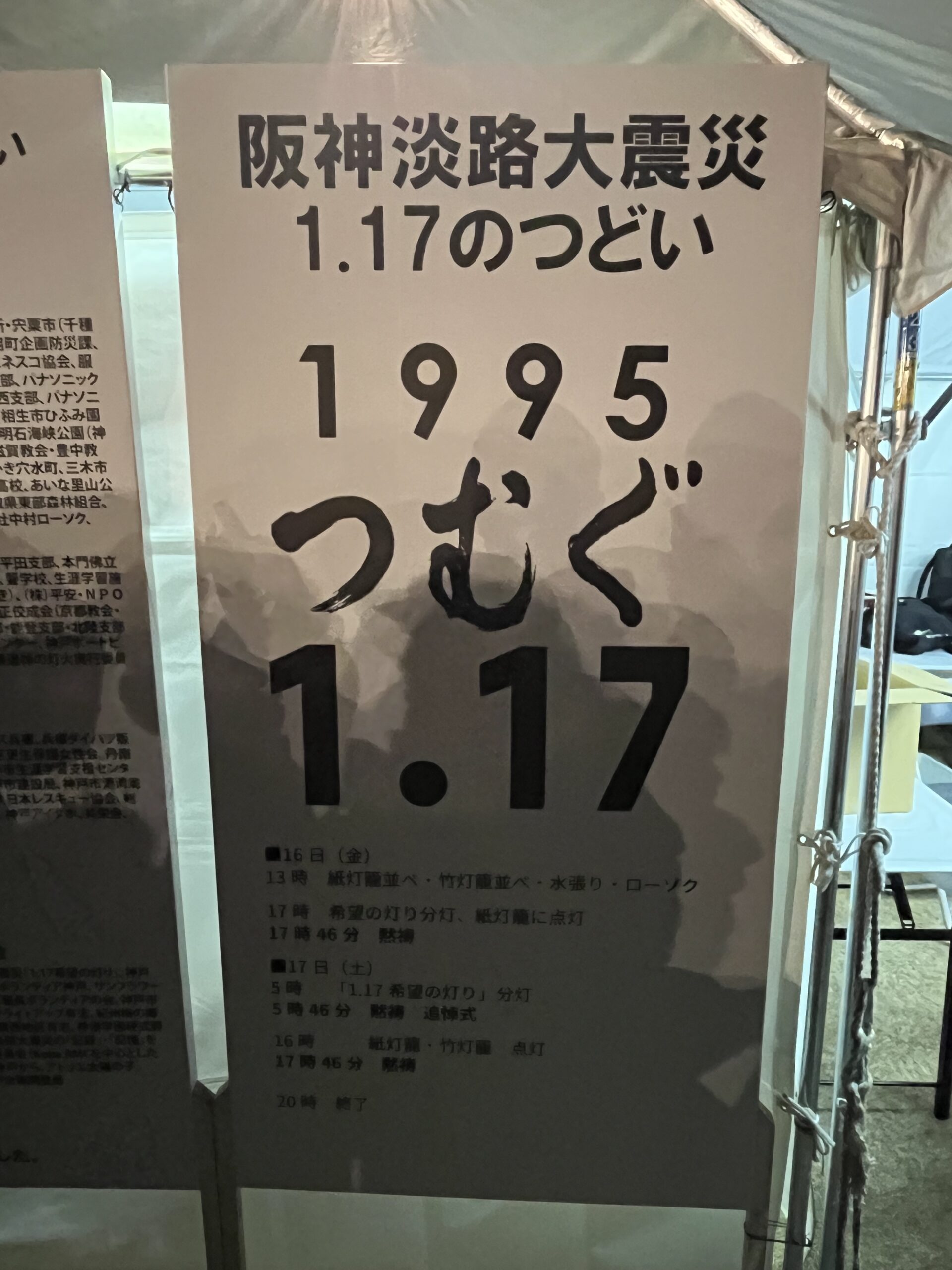 阪神淡路大震災1.17のつどい 2026.01.20設営・施工実績 神戸市中央区の東遊園地において、阪神淡路大震災1.17のつどいの会場設営を行いました。 主にテント・展示パネル・暖房器具・電気工事等を施工させて頂いております。 竹灯籠用の竹切にも参加させて頂きました。 私も神戸市民で震災を経験し、大事なイベントに参加することが出来て良かったです。 Tweet Share Hatena Pocket RSS 投稿者: 島田 設営・施工実績 ユニバー記念競技場 仮設更衣室設営 北区新年のつどい 会場設営 関連記事一覧 垂水児童館・おやこふらっとひろば完成記念式典 会場設営 神戸総合運動公園 ユニバー記念競技場 平台ステージ設営 市民広場夏まつり 会場設営 神戸市看護大学あざみ祭 会場設営 ガソリンスタンド竣工式 会場設営 神戸市役所「連絡棟」完成記念式典 会場設営 ♯たるみりょくマルシェ 会場設営 ヴィッセル神戸ビールかけ会場設営 にわのあかり2025 会場設営